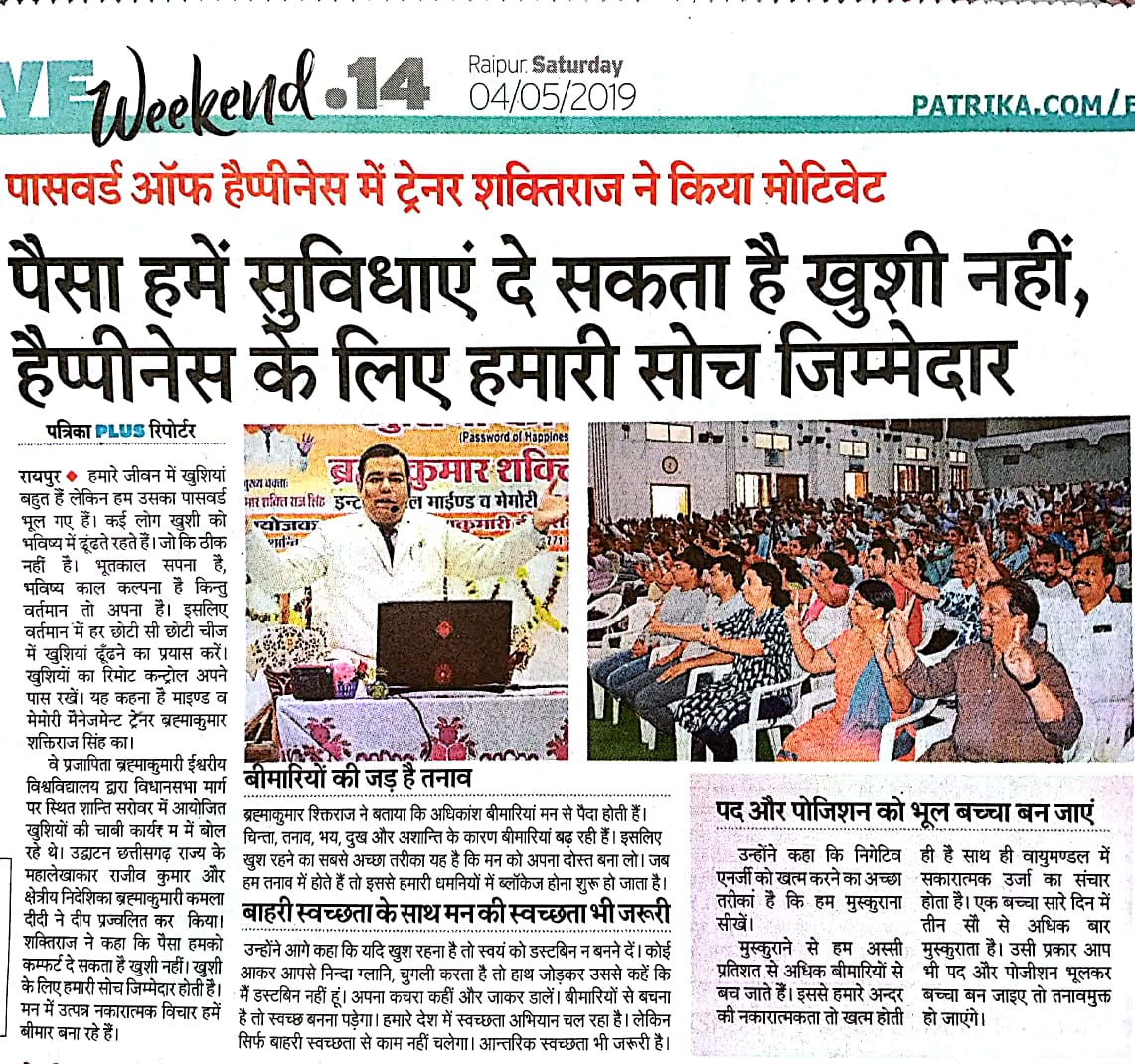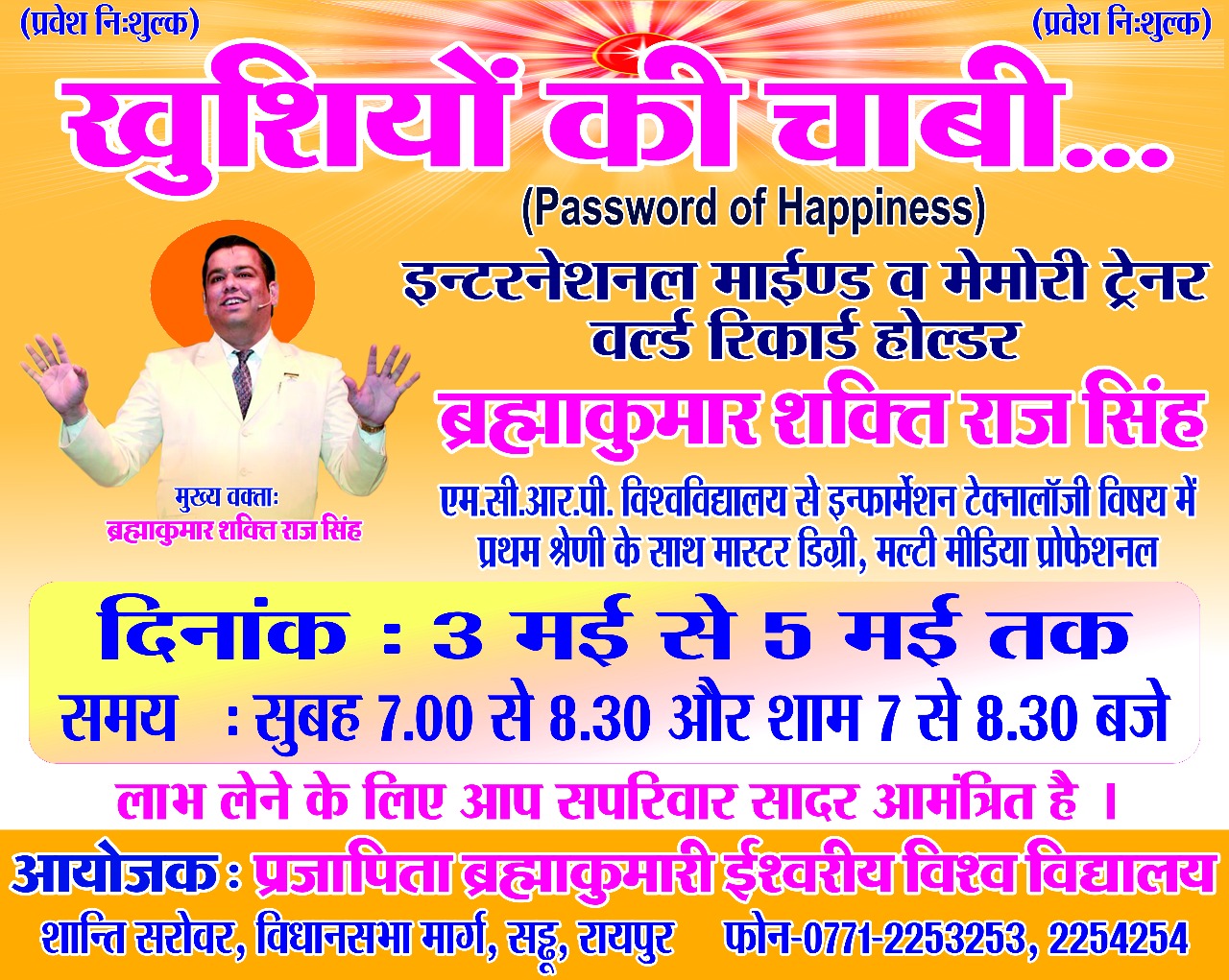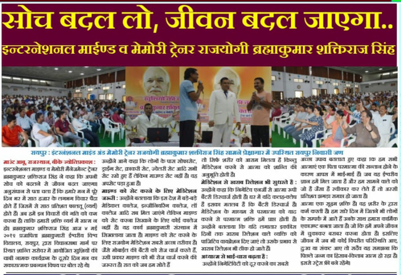 Raipur Press News :इन्टरनेशनल माइण्ड व मेमोरी मैनेजमेन्ट ट्रेनर ब्रह्माकुमार शक्तिराज सिंह